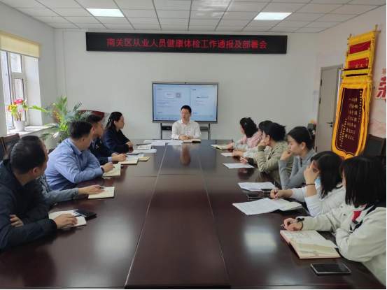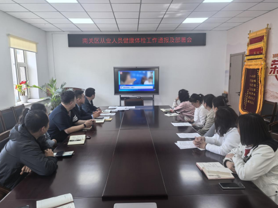 会上,卫健局对5月15日在南关区医院、南关区中医院健康体检科暗访情况进行通报,随后2家医院分别汇报了2025年上半年从业人员健康体检工作开展情况,并组织工作人员观看了近期部分地区违规办理“健康证”的案例视频,以新闻报道中提到的违法违规事实作为警醒。
