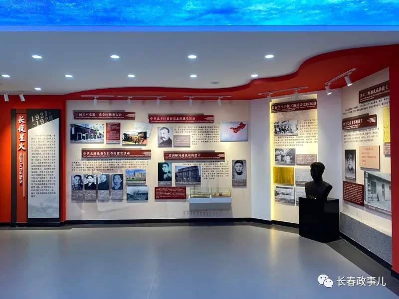 展馆背景墙涵盖文字介绍5000余字、图片200余幅。通过展板、实物、LED显示屏、情景再现等多种形式,全方位、立体化反映了早期爱国志士反帝反封建革命行动、中共北满地委在长春的建党活动、省立二师通讯站建立、中共长春支部诞生等重要历史事件。