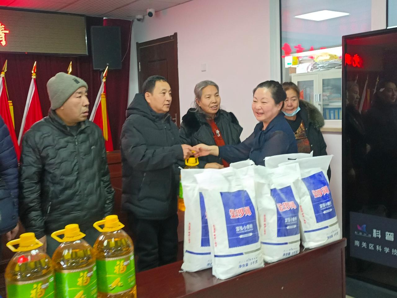 辞旧迎新启新程,温情关爱暖人心。12月31日,富裕街道中海南溪社区新时代文明实践站内暖意融融,富裕街道党工委书记乔志新、街道办事处副主任张景良携社区党委联合长春城投生态治理建设投资有限公司临时党支部党员,在此开展“党群互助迎佳节 社企有爱送温情”新年慰问活动,为辖区15户低保户、特困家庭集中送上大米、白面、豆油及调料礼盒等生活物资,践行党群同心、社企联动的服务行动,为困难群众铺就温暖过年路。