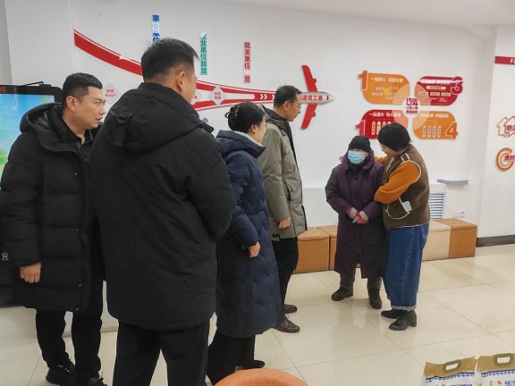 物资发放环节,慰问组人员与社区工作人员分工协作,将一份份装满米面油的物资递到群众手中。接过沉甸甸的生活物资,群众们脸上洋溢着感动的笑容,不停地向慰问组表达感谢,“太感谢了,这些物资都是日常生活用得上的,有了它们,可以过个好年了,真是太贴心了!”一位领取物资的阿姨激动地说,现场氛围温馨而热烈,一句句问候、一声声感谢,交织成温暖的画面。