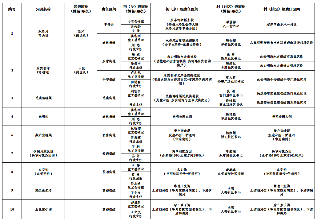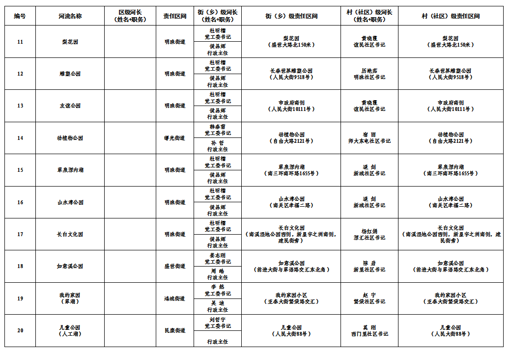 南关区三级河长及责任水体名单